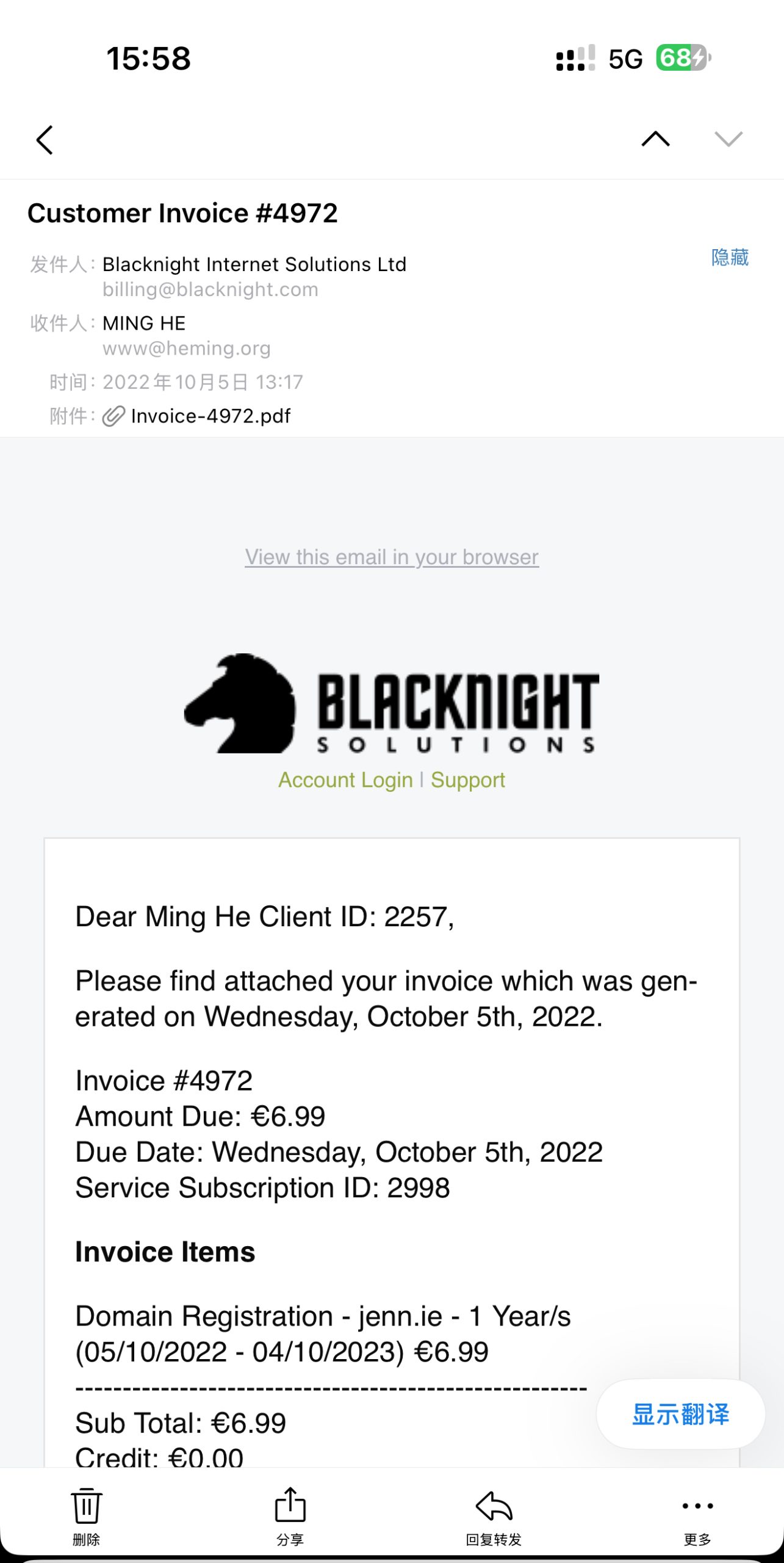 花了我 6.99 欧元新域名 JENN.IE 到手。🤓